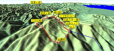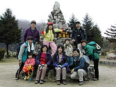 山上駅前にある登山碑前で全員記念撮影。これより各自分散登山スタイルを選択。と言うのが、子供さんの年齢により夫々行けるコースが自ずと違ってくるし、それを携帯電話やメールでやり取りすれば連絡もできる。でも、地形により携帯が通じない処もあるから、メールのやり取りの方が確実であった。私と奥代さん(16期)、今枝さん(19期)の3名は昨年同様ご一緒で、山を一周するコースを取った。そのコースとは、上記の展望図である。宮本さん親子は八雲から直線コースで武奈ヶ岳山頂を。