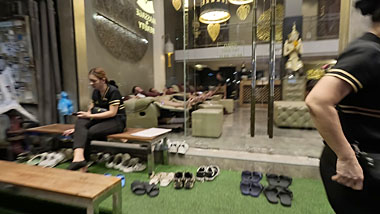 夕食は名店「コカ」でタイスキ | ナイトマーケット | 繁華街はタイ式マッサージ店が軒を並べていた |