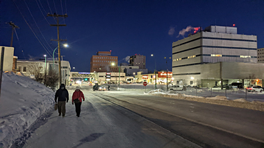 | 夕暮れ | ホテルで夕食を獲る | イエローナイフから5時25分発バンクーバーへ |
